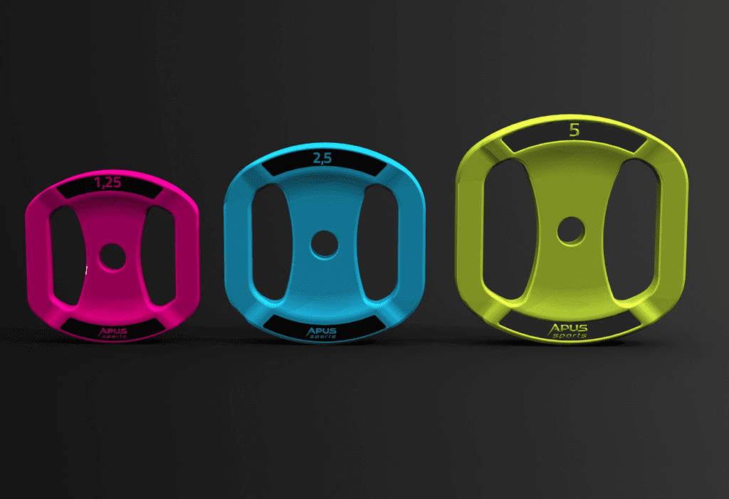Weights designed for training both with a barbell or separately. The ergonomic shape of the handles lets you perform many additional exercises. The weights can be stacked, what makes them stay firmly on the barbell. The project was awarded Golden Medal on Poznań International Fair Fit Expo 2015.