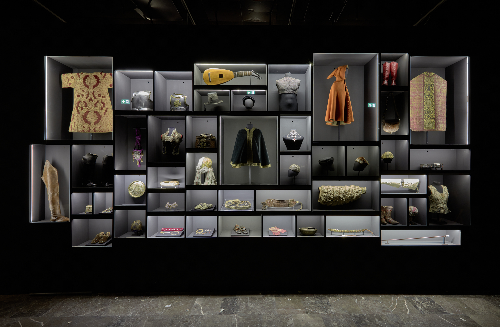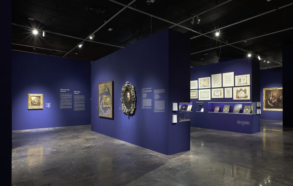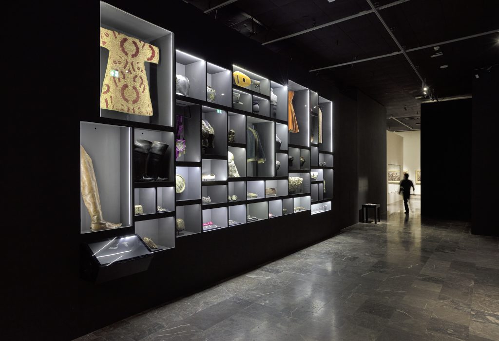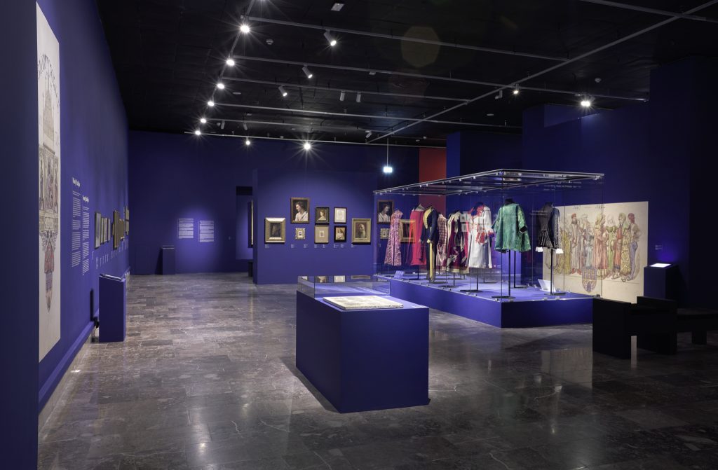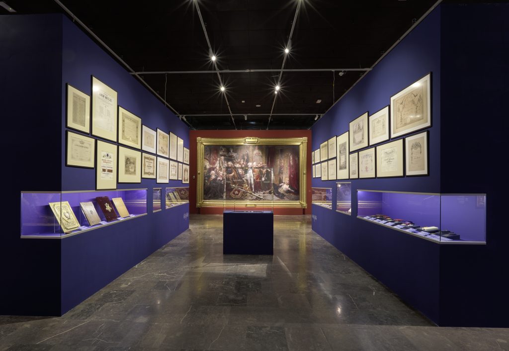 The very first section of the exhibition consisting of props is highlighted, and thus separated from the rest, that focuses more so on artist’s main works. Special niches, constructed in the walls in order to store the more important works, were a continuous element of the arrangement. The exhibition as a whole is designed to lead the spectators in a way they can discover an image of Matejko that is different from one presented in history or art history books.